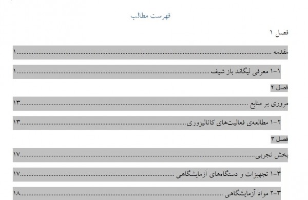 در مورد سفارشی کردن فهرست مطالب دیدم قبلا هم تو سایت سوال شده بود و میشد عنوان و صفحه رو اضافه کرد ولی ایا ممکن هست واسه شماره دهی هم الو فصل بیاد بدون شماره بعد عنوان فصل و شماره بدون نقطه بین و بعد هم بخش و زیر بخش ها با شماره صفحات و نقطه های بین آنها.....