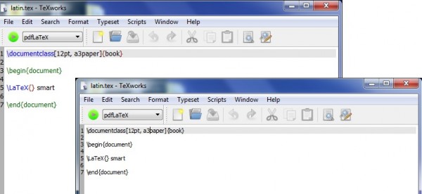 format -> syntaxcoloring-> LaTeX