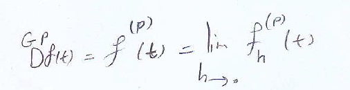 \[{}^GD{}^Pf(t) = {f^{(p)}}(t) = \mathop {\lim }\limits_{h \to 0} f_h^{(p)}(t)\]