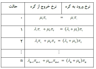 نرخ ورود به گره & نرخ خروج از گره & حالت \\ \hline