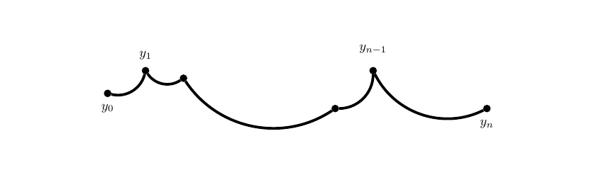 \node [label=below:{\normalsize $y_{n}$}] (n6) at (40,0) {};