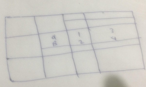 \multirow{1}{*}{a} & b & \multirow{2}{*}{c} & \multirow{2}{*}{d}\tabularnewline