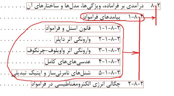 من می‌خواستم میزان فرورفتگی بخش‌ها و زیربخش‌ها و ... در فهرست مطالب به‌اندازه‌ی حدودا عرض یک شماره باشه (مثل عکس پیوست شده).