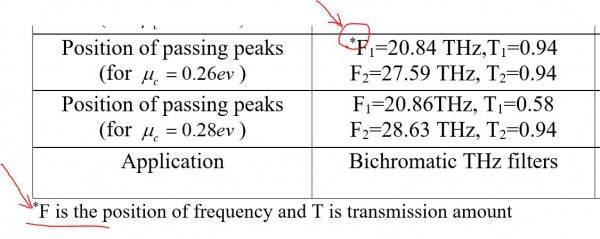 $\tnote{*}F_1= \SI{20.90}{THz}$, $T_1=0.27$