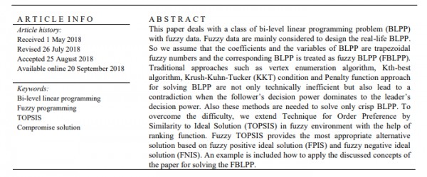with fuzzy data. Fuzzy data are mainly considered to design the real-life BLPP.