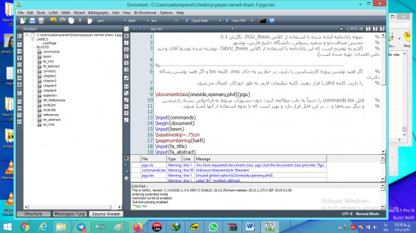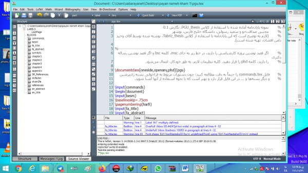 با سلام و وقت بخیر/ این مشکل هم قبلا در سایت مطرح شده اما یه خورده مشکل من متفاوته/ من یک فایل خام دارم که برای نوشتن پایان نامه باید تغییرات رو توی اون ایجاد کنم اما بعد از ایجات تغییرات و ذخیره موقع اجرا در قسمت quick build، errorهایی به رنگ ابی میده و تغییراتی توی pdf ایجاد نمیشه/ ممنون میشم راهنمایی بفرمایید