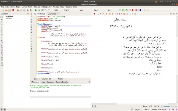 من یک تازه کار با لاتک هستم که تنها چند روزه با لاتک آشنا شدم ولی متاسفانه الان دو دستور textbf , textitبرای من در صورتی که از پکیج xepersian استفاده کنم کارنمی کند در غیر این صورت کار می کند در ضمن سیستم عامل مورد استفاده من ubuntu18 می باشد یک عکس هم پیوست کرده ام ممنون می شوم که راهنمایی ام بکنید.