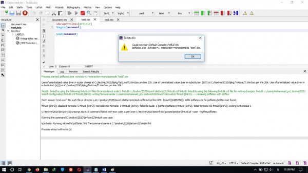 ونکته اخر وقتی بعد از این نصب ناقص یک فایل tex رو با تک استدیو ران میکنم خطای زیر رو میده