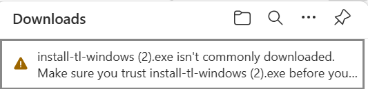 یا امضای دیجیتال این فایلهای نصبی بصورتی هست که نمیتونه سلامتشو ببینه و بهش اعتماد کنه. (مثلا در مورد این TeX Live که نه مخرب هست و نه ویروس، این پیام نشان داده میشه)