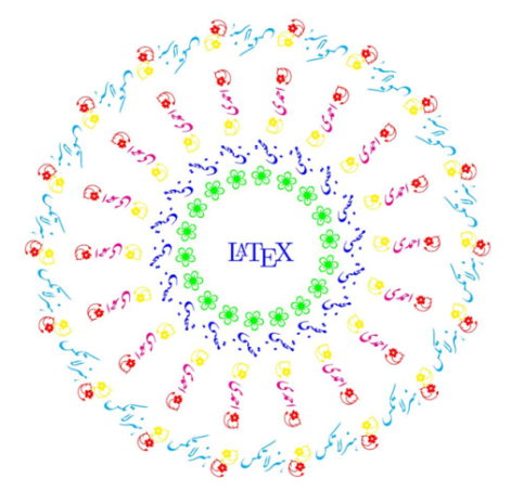 \draw [rotate around={\angle:(0,0)}] (7,0) node{{\Large \color{yellow} {\floweroneright}}\;\color{magenta} {\nastaliq\text{هاشمی}}