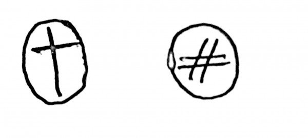 \node[shape=circle,draw,inner sep=0pt] (char) {$\#$};}}