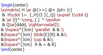 H \ar@{>>}[r] & H\cdot 1= {_H}{I}{_Q} \supset 1\cdot Q & & Q \ar@{>>}[ll]_-{\epsilon}^-{\cong} \\