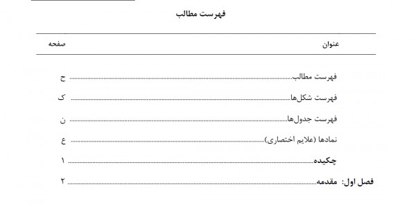 با سلام میخواستم بدونم صفحه فهرست رو چطور میشه تنظیم کرد من باید صفحه فهرستم مثل شکل پیوست شده باشه یعنی بالاش به صورت جدول مانند باشه و خود فهرست هم داخلش لیست شده باشه ممنون من با دستور زیر فهرست را وارد کردم