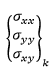 \begin{equation*} \begin{bmatrix} \sigma_{xx}\\ \sigma_{yy} \\ \sigma_{xy} \end{bmatrix}_k \end{equation*}