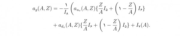 a_{g}(A,Z)&=-\frac{1}{I_{8}}\left(a_{u_{v}}\left(A,Z\right)\left\{\frac{Z}{A}{I_{5}}+\left(1-\frac{Z}{A}\right){I_{6}}\right\}\right.\\