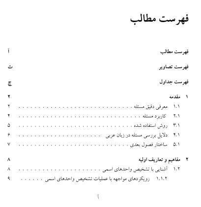 می‌خواهم شماره گذاری صفحات فهرست به صورت الفبای فارسی (الف، ب ، ...) باشد اما صفحات مربوط به فصل‌ها که در ادامه فهرست می‌آیند به صورت عددی باشد.