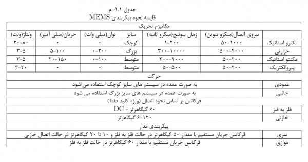 \caption{ مقایسه نحوه پیکربندی \lr{MEMS}}