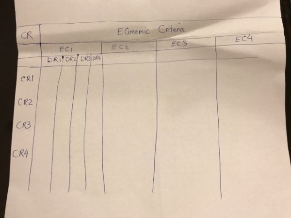 CR  & \multicolumn{16}{c}{Economic Criteria}                                                                   \\ \hline
