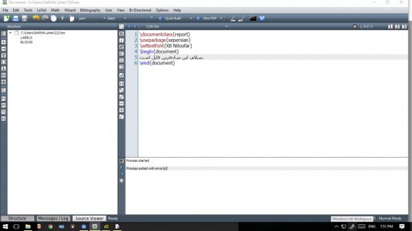 چون ممکنه در حال پردازش، ویرایشگر شما منفعل شده باشد لذا از ویرایشگر پیشفرض لاتک به نام Texworks در مسیری مشابه زیر در سیستم خود نیز میتوانید استفاده کنید: