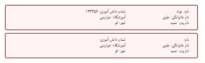 نام خانوادگی: \surname & آموزشگاه: \school\\