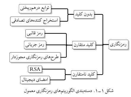 \caption{دستهبندی الگوریتمهای رمزنگاری معمول}