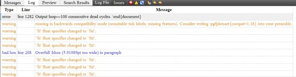 این خطا شکایت لاتک از شما است. تعدادی از عکسهایی که دارید در یک صفحه جا نمیشدند و 100 بار آنها را دور داده تا آنها را بازنشانی کند و جایی پیدا نکرده است و به شما اخطار داده است (حدودا 98 برابر بیش از حد معمول). در واقع نقطهای برای شکست آن پیدا نکرده است. تک در یک حلقه (loop) گیر افتاده است. از آپشن H از بستهی float و به صورت زیر استفاده کنید: