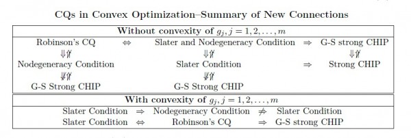 \caption{CQs in Convex Optimization Summary of New Connections}