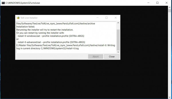 من TexLive رو با روش RSync دانلود کردم.اما هنگام نصب دچار مشکل میشم و ارور تصویر(1) رو میده.حتی دوباره دانلود کردم اما باز مشکل رو دارم