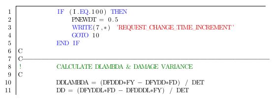 language=fortran,morecomment=[l][\color{greencomments}]{C},