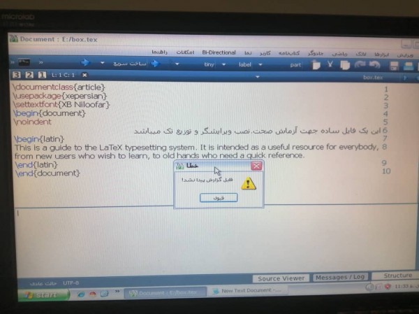 سلام. ببخشید بنده وقتی برنامه ام نوشتم برای اجرا کردن برام پیام میده، خطا: که فایل گزارش پیدا نشد. و تو قسمت پیام ها هم بهم هیچی چیزی نشون نمیده... و وقتی هم پی دی اف میشه خطا میدهد باز. ببخشید فقط روی سیستم بنده تک میکیر دو جهته نصب میشه و نرم‌افزار دیگه ایی از لاتک را اجرا نمیکند. لطفا به عکس ارسالی توجه کنید.مدام با این پیام روبه‌رو میشم.