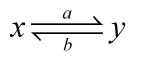 \[x\underset{b}{\overset{a}{\rightleftharpoons}}y\]