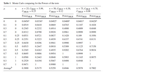 $Power_{SBLR}$ & $Power_ {MLR}$ & $ $ &$Power_{SBLR} $& $Power_{MLR}$ & $ $ & $Power_{SBLR}$ & $Power_{MLR}$ & $\eta$ & $\mu$ \\