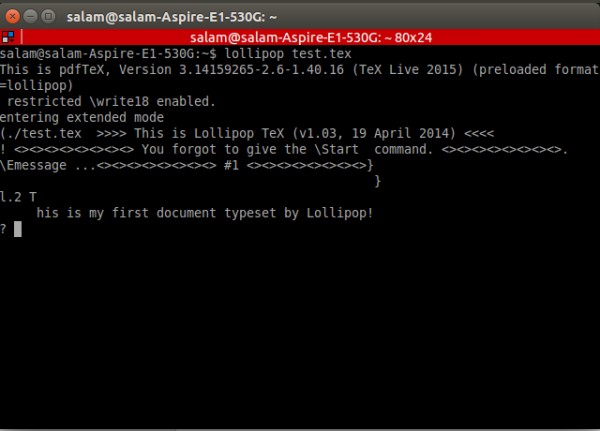 و نامش را test.tex بگذارید. برای گرفتن خروجی دستور
