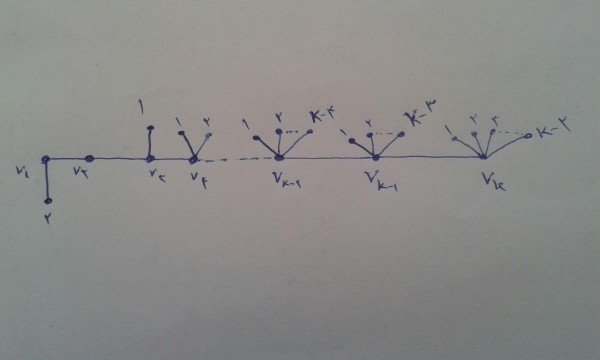 با سلام. گراف کاترپیلار را که در زیر عکس را پیوست کردم میخاستم رسم کنم . ممنون میشم کمکم کنین. گراف شامل مسیری به طول k که رئوس را نامگذاری کردم و هر رأس دارای k-2 همسایه می‌باشد.