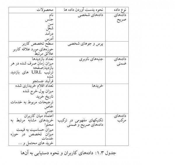 \caption{دادههای کاربران و نحوه دستیابی به آنها}
