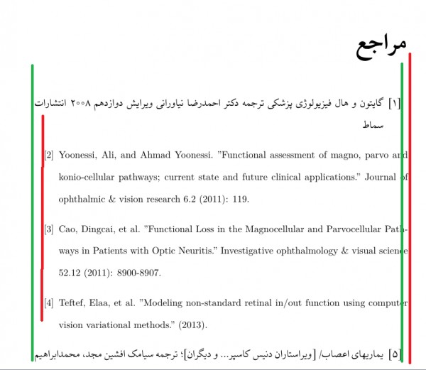 سلام من از کلاس KNTU-thesis برای نوشتن پایان نامه ام استفاده میکنم ( ضمیمه شده است) در قسمت مراجع برای زبان فارسی و لاتین حاشیه نابرابری در نظر گرفته شده است. در کدام قسمت این تنظیمات قرار داده شده است و آیا میتوان آن ها را دستکاری کرد؟