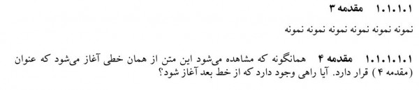 با توجه به محدودیت در تعداد زیربخش‌ها در لاتکس، برای افزودن یک زیربخش از \paragraph استفاده کرده‌ام. اما همانگونه که در تصویر مشاهده می‌شود عنوان زیربخش و ابتدای متن در یک خط قرار می‌گیرند (در صورتی که باید ابتدای متن از خط بعد آغاز شود).