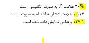 بنده متنی فارسی دارم که در آن از نمادها و اعداد ریاضی استفاده شده است. اما متاسفانه نمادهایی نظیر %، ممیز و غیره به صورت انگلیسی نوشته می‌شوند. همچنین اگر اعداد را در $$ قرار ندهم به صورت برعکس نمایش داده می‌شوند. می‌خواستم بدانم راه حل آن چیست؟