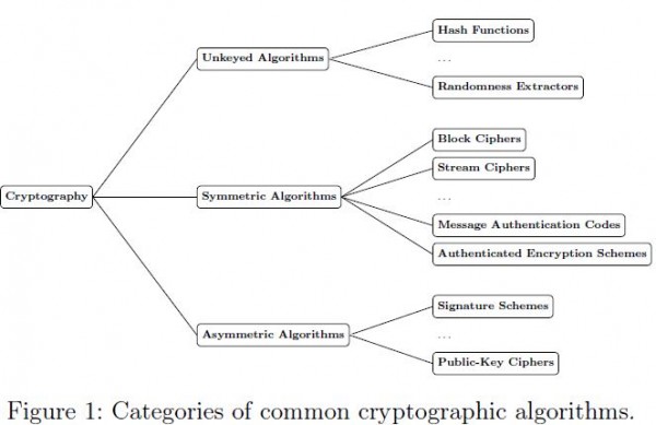 \caption{دسته‌بندی الگوریتم‌های رمزنگاری معمول}