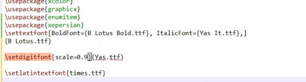 با سلام من برای فونت اعداد از یاس استفاده کردم و با توجه به اینکه فونت اصلی لوتوس می باشد می خواهم اندازه فونت اعداد داخل متن را کم کنم ولی موقع استفاده از دستور setdigitfont خطا به شکل زیر می دهد