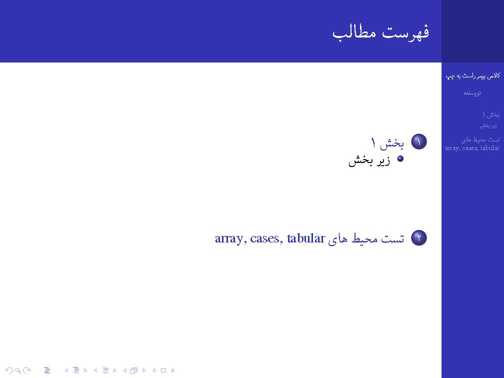 این یک فایل کمینه هست که مشکل نخست رو بدون استفاده از بسته babel نشون میده. کافیه دستورات بدوی \pagedir و \bodydir رو comment کنید یا پاکشون کنید تا ببینید مشکلی وجود نخواهد داشت.