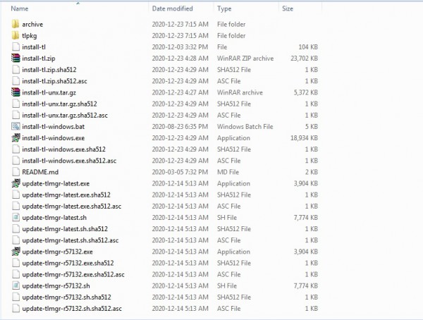 سلام روز بخیر من تکلایو ۲۰۲۰ رو با روش RSync دانلود کردم. تقریبا هشت گیگ شد ولی حالا که میخوام نصبش کنم اصلا فایل install-tl-advanced.bat در پوشه تک لایو وجود نداره!!! تصویر محتویات پوشه تک لایو رو هم پیوست کردم.