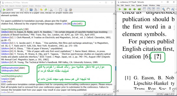 الان برای فراخوانی رفرنس ها به مشکل برخوردم و رفرنس ها طبق شکل زیر در فایل نشان داده نمی شوند .