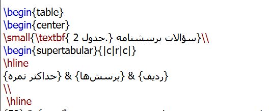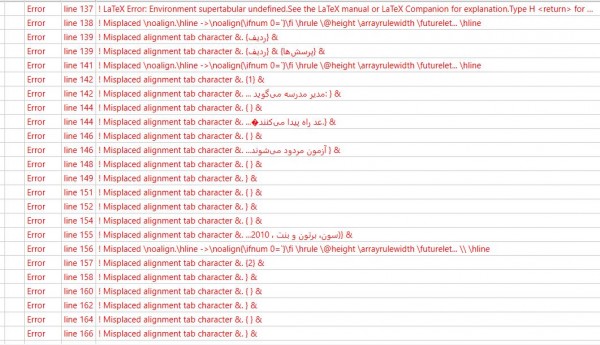 با توجه به طولانی بودن جدولم، دو دستور supertabular و longtable به درستی جدول را به صحفه بعد منتقل نمیکنند و همراه با خطا و بهم خوردگی جدول هستند.