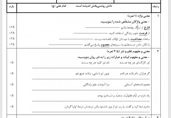 معنی واژه (2 نمره)