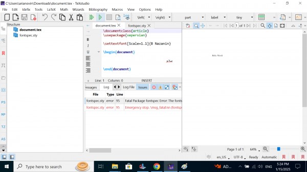 باسلام. بعد از نصب texlive و texstudio اسنادی که فارسی نیستند را میتوانم اجرا کنم و خروجی pdf بگیرم، اما بعد از وارد کردن دستور \usepackage{xepersian} با پیغام خطای زیر مواجه شدم: