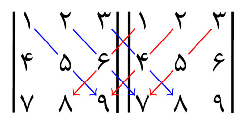 \draw[->, blue] (m-1-1) -- (m-2-2) -- (m-3-3);
